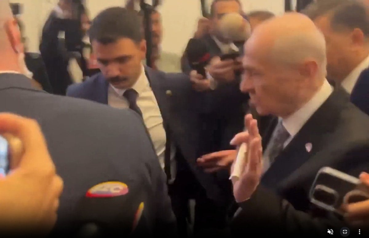 MHP lideri Devlet Bahçeli, partisinin grup toplantısının ardından gazetecilerin, avukat Serdar Öktem’le ilgili sorularını yanıtsız bıraktı. Bahçeli, sorulan soruyu el işaretiyle savuşturdu.